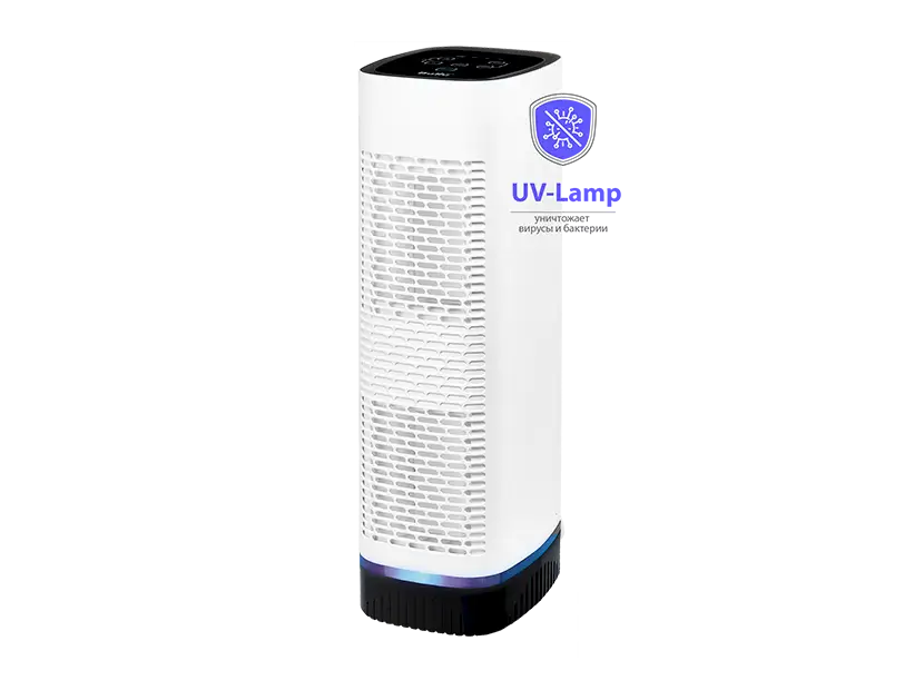 Очиститель-обеззараживатель Ballu AP-110 создает чистый и безопасный воздух, улучшая его качество с помощью системы фильтров, ионизатора и ультрафиолетовой лампы. Датчик мелкодисперсных частиц PM2.5 сканирует воздух в помещении и определяет количество опасных веществ. Цветовая индикация информирует о степени загрязненности воздуха. Pre-фильтр предварительной очистки задерживает крупные частицы пыли, пух, шерсть. HEPA-фильтр удерживает пыль, пылевых клещей, споры грибов, пыльцу и прочие мельчайшие загрязнители. Угольный фильтр борется с неприятными запахами и дезодорирует помещение. Полноразмерная ультрафиолетовая лампа совместно с фотокаталитическим фильтром, уничтожает вирусы, бактерии, грибки, плесень и споры. Пинап ионизатор и насыщает воздух отрицательными аэроионами Дополнительный комфорт при эксплуатации - Таймер 24 часа на отключение и Таймер замены фильтров В «Ночном режиме» работу прибора почти не слышно благодаря тихому мотору.